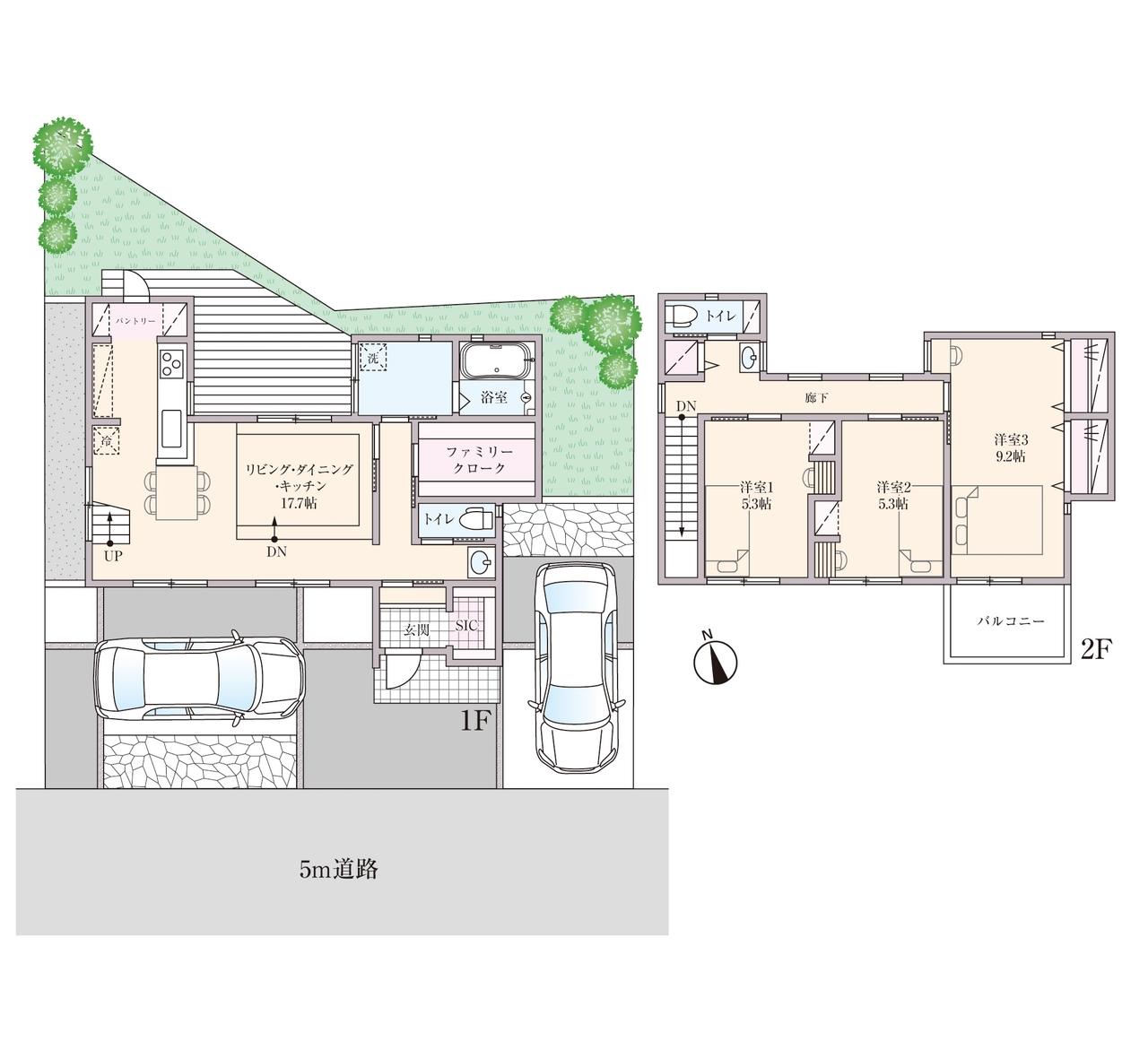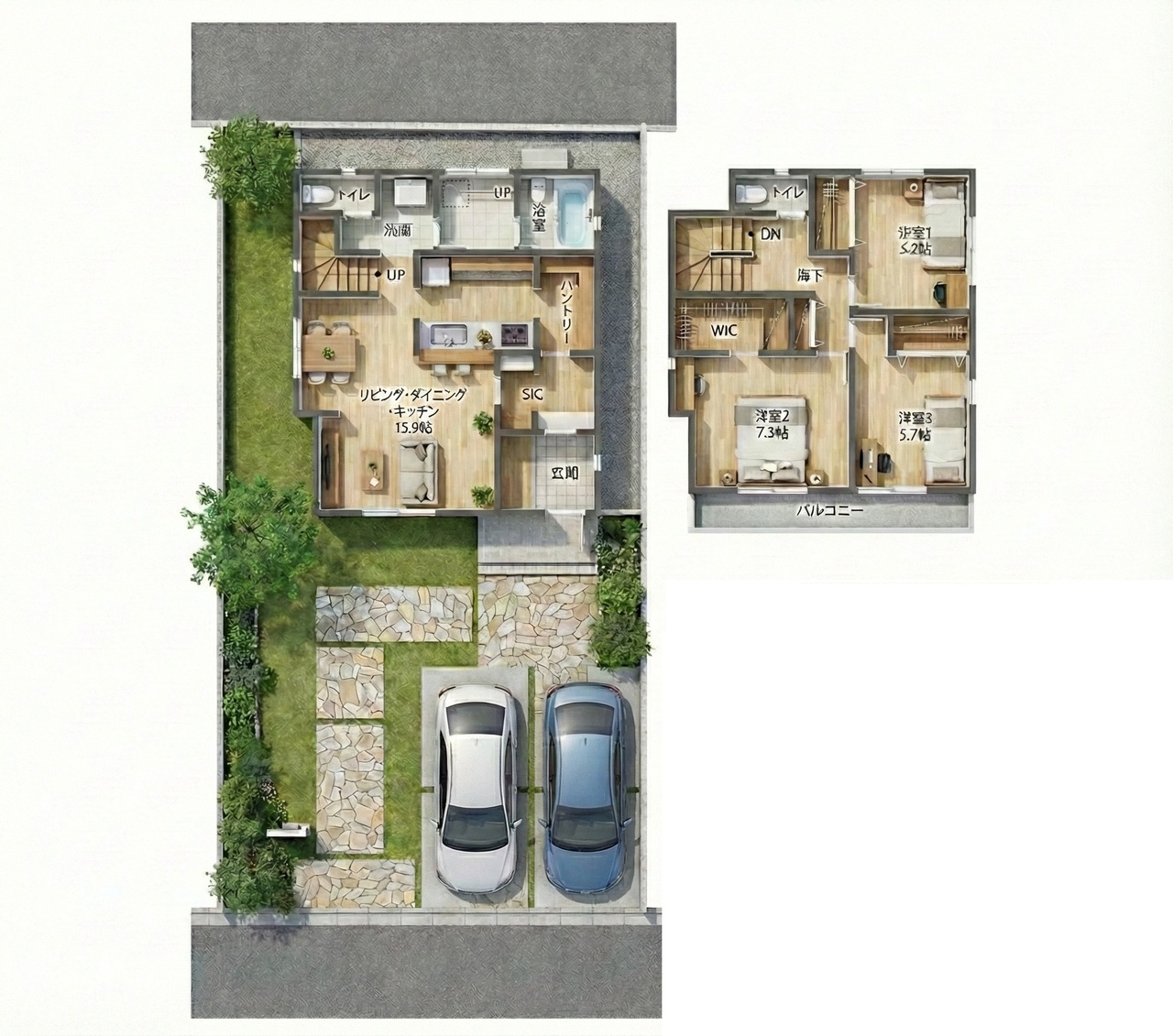 - ※完成予想図はいずれも外構、植栽、外観等実際のものとは多少異なることがあります。