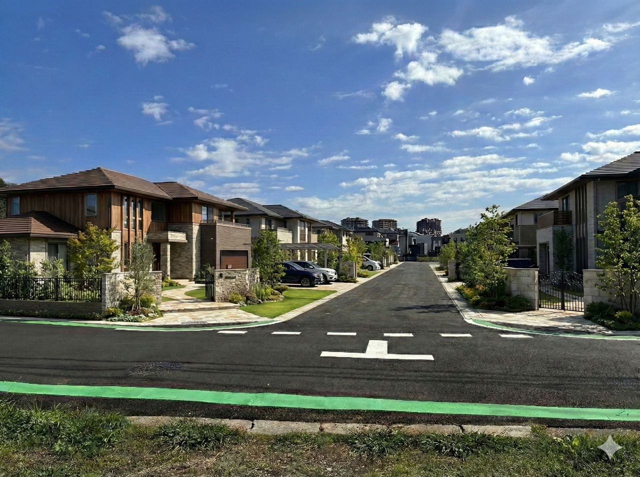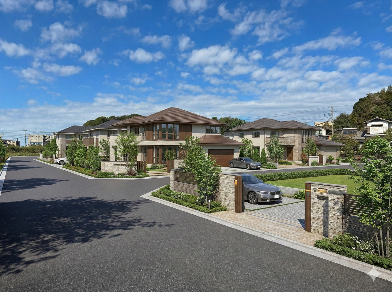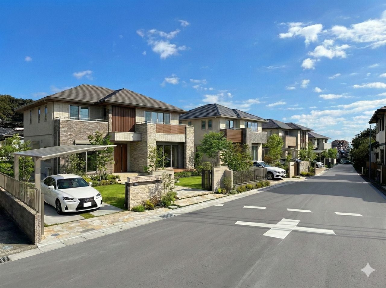 周辺は弊社が手がけた戸建てが整然と並ぶ、穏やかで品のある住宅街が広がります。